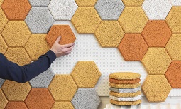 Los coloridos azulejos hexagonales hechos de “lana de madera” que absorben el ruido de las paredes